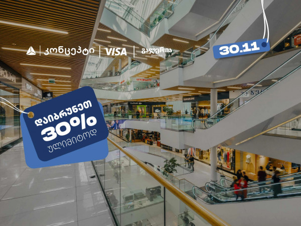 თიბისი კონცეპტმა მომხმარებლებს წელსაც ხანგრძლივი Black Friday შესთავაზა. სამდღიანი შეთავაზებების ბოლო დღეს, მხოლოდ 30 ნოემბერს, გალერია თბილისის დაბადების დღეზე, შერჩეულ ობიექტებში, თიბისი კონცეპტის Visa ბარათით გადახდისას, 30% -ს ულიმიტოდ დაიბრუნებენ