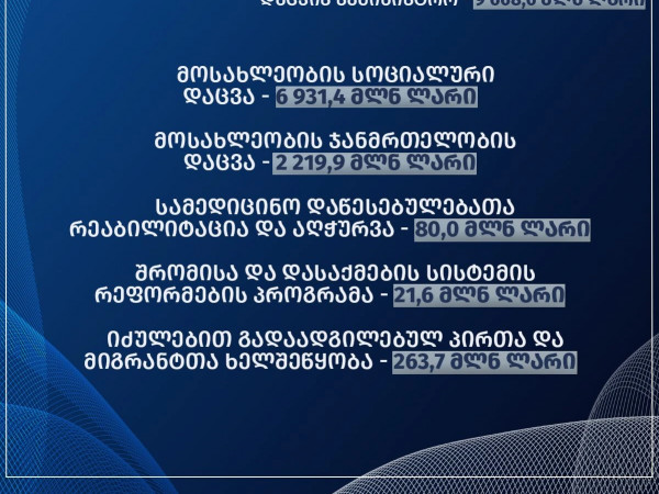 2026 წლის ბიუჯეტის პროექტის საბოლოო ვერსიაში საქართველოს ოკუპირებული ტერიტორიებიდან დევნილთა, შრომის, ჯანმრთელობისა და სოციალური დაცვის სამინისტროს ასიგნებები, გაიზარდა, დაახლოებით, 48 მილიონი ლარით და ჯამში, 9 მილიარდ 668 მილიონ ლარს აჭარბებს.