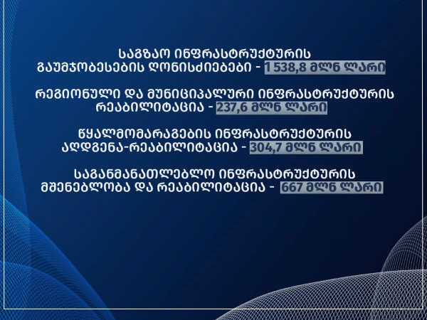 2026 წლის ბიუჯეტის პროექტის საბოლოო ვერსიაში ინფრასტრუქტურის სამინისტროს დაფინანსება, ჯამურად, 17 მილიონ ლარამდე იზრდება და 3 მილიარდ 113 მილიონ ლარს აჭარბებს.