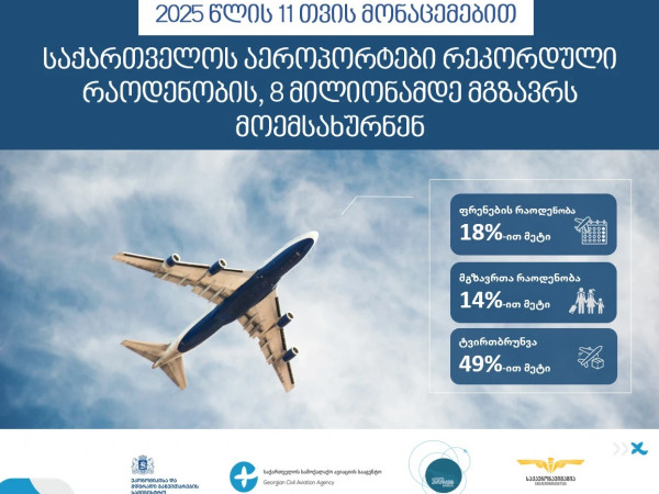 2025 წლის 11 თვის მონაცემებით, საქართველოს აეროპორტები რეკორდული რაოდენობის მგზავრს მოემსახურა. ეკონომიკისა და მდგრადი განვითარების მინისტრის მოადგილის თამარ იოსელიანის განცხადებით, უპრეცედენტოდ მაღალი ზრდა დაფიქსირდა როგორც მგზავრთნაკადისა და ავიარეისების, ისე საერთაშორისო საავიაციო სატვირთო გადაზიდვების კუთხით.