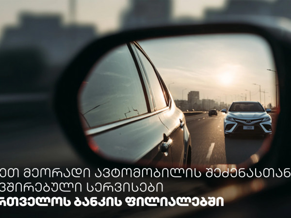 საქართველოს ბანკი მომხმარებლებისთვის მარტივი, სწრაფი და კომფორტული სერვისების შექმნას განაგრძობს. ამჯერად, თბილისში, საქართველოს ბანკის სამ ფილიალში, მეორადი ავტომობილის შეძენასთან დაკავშირებული სერვისები უკვე ხელმისაწვდომია.