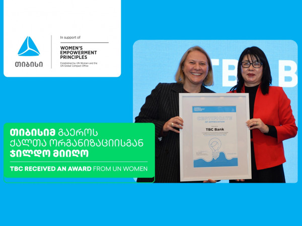 ქალთა გაძლიერებაში შეტანილი განსაკუთრებული წვლილისთვის, განხორციელებული ინიციატივებისა და ქალთა გაძლიერების პრინციპების მიმართ მტკიცე ერთგულებისთვის - თიბისის გაეროს ქალთა ორგანიზაციისგან ჯილდო გადაეცა.
