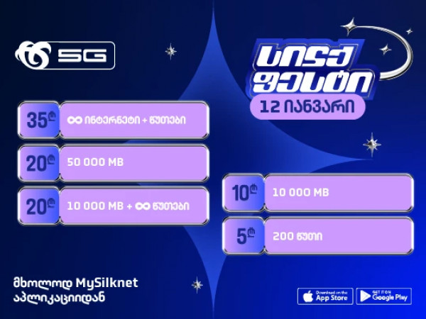 12 იანვარს, მომხმარებლები ისარგებლებენ სილქფესტის აქციით და სპეციალურ ფასად გაიაქტიურებენ ერთ ან მეტ პაკეტს მხოლოდ Mysilknet აპლიკაციიდან :