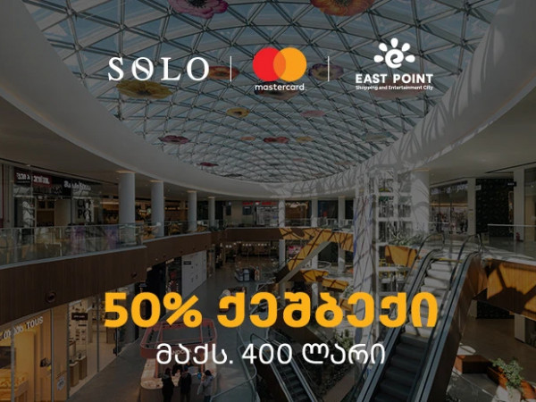 27 მარტს, SOLO Mastercard World Elite ბარათის მფლობელებს შესაძლებლობა აქვთ, ისარგებლონ ქეშბექით ისთ ფოინთის ახალ სივრცეში არსებულ 40-მდე ბრენდის მაღაზიაში.