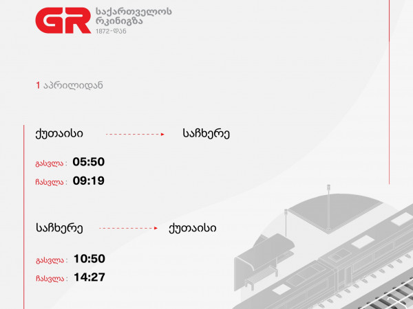 საქართველოს რკინიგზა 1 აპრილიდან ქუთაისი-საჩხერე-ქუთაისის მიმართულებით ელექტრომატარებელს ნიშნავს.