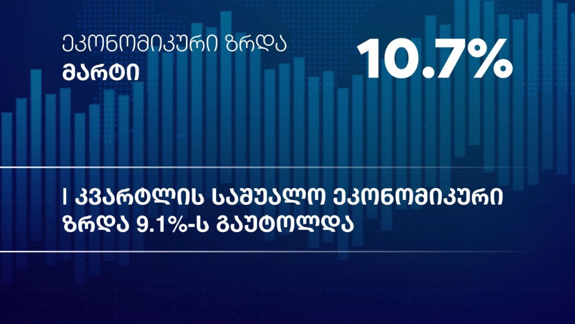 2026 წლის მარტში საქართველოს ეკონომიკა 10.7%-ით გაიზარდა, ხოლო I კვარტალში, საშუალო რეალურმა ეკონომიკურმა ზრდამ 9.1% შეადგინა.