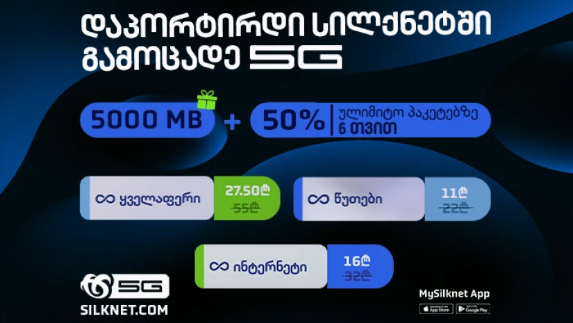 სილქნეტის მობილურ ქსელში პორტირებისას მომხმარებელს საჩუქრად გაუაქტიურდება 5000 MB ინტერნეტი. ასევე აირჩევს ულიმიტო პაკეტებიდან სასურველს და 6 თვის განმავლობაში ისარგებლებს განახევრებული ტარიფით: