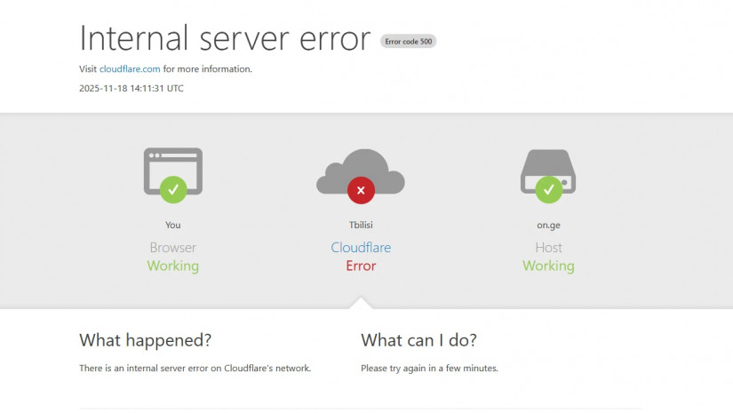 დღეს შუადღისას Cloudflare-ში სერიოზული შეფერხება მოხდა, რის გამოც ბევრი ვებსაიტი და ონლაინ სერვისი მიუწვდომელი გახდა. მომხმარებლები იტყობინებიან ჩატვირთვის პრობლემებზე, გვერდების მიუწვდომლობაზე და სერვისების მნიშვნელოვან შენელებაზე. შეფერხების ზუსტი მიზეზი ჯერჯერობით უცნობია.