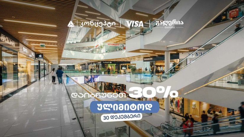 თიბისი კონცეპტის მომხმარებლებისთვის საახალწლო შეთავაზებები კვლავ არ დასრულებულა. მხოლოდ 30 დეკემბერს, გალერია თბილისის შერჩეულ ობიექტებში, თიბისი კონცეპტ Visa სადებეტო ბარათით გადახდისას, თანხის 30%-ს ულიმიტოდ და მომენტალურად დაიბრუნებთ.