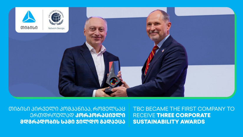 თიბისის, გაეროს გლობალური შეთანხმების ყოველწლიურ დაჯილდოებაზე „კორპორაციული მდგრადობის ჯილდო 2025 – ბიზნესი მდგრადი განვითარებისთვის“, ჯილდო სამ ნომინაციაში გადაეცა. თიბისი პირველი კომპანია გახდა, რომელმაც ამ დაჯილდოებაზე ერთდროულად 3 ჯილდოს მოპოვება შეძლო.