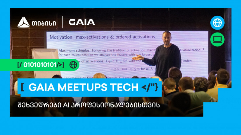 თიბისის მხარდაჭერით, საქართველოს ხელოვნური ინტელექტის ასოციაცია (GAIA), ყოველთვიური შეხვედრების სერიას „GAIA Meetups“ აგრძელებს. 13 ნოემბერს GAIA Meetups Tech-ის მორიგი შეხვედრა ჩატარდა, რომლის სპიკერიც AI მკვლევარი ლევან ცინაძე იყო. მან მონაწილეებს საკუთარი კვლევის შედეგები გაუზიარა. კვლევა ენის მოდელების (LLMs) ახსნადობას (Explainability) და ინტერპრეტირებადობას (Interpretability) შეეხება და კომპლექსურ მათემატიკურ საკითხებს მოიცავს. პრეზენტაციის გარდა, შეხვედრის მონაწილეებს ნეთვორქინგის და იდეების, სიახლეებისა და გამოცდილების გაცვლის შესაძლებლობაც ჰქონდათ.
