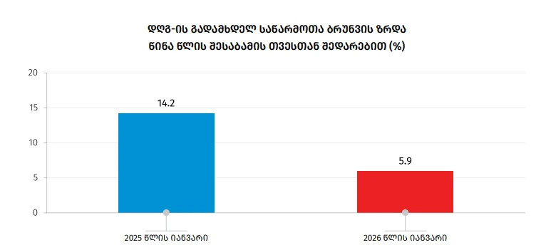 2026 წლის იანვარში, წინა წლის შესაბამის პერიოდთან შედარებით, ზრდის მიმართულებით მნიშვნელოვანი წვლილი შეიტანა შემდეგმა დარგებმა: ინფორმაცია და კომუნიკაცია, საფინანსო და სადაზღვევო საქმიანობები, სამთომოპოვებითი მრეწველობა, სასტუმროები და რესტორნები.